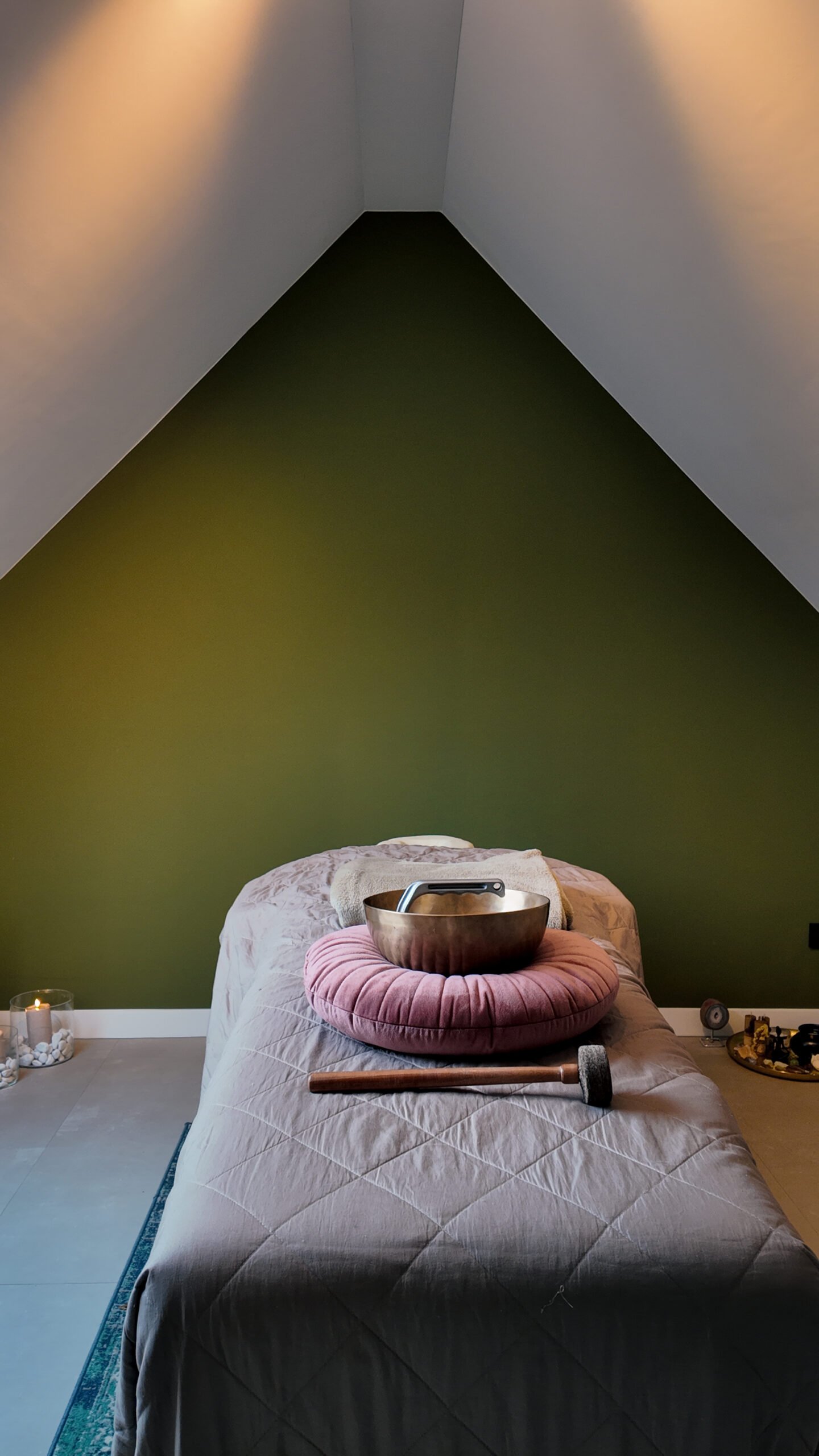 Je mag volledig aangekleed op de behandeltafel komen liggen, onder een zacht dekentje. De sfeer is warm, rustig en liefdevol.